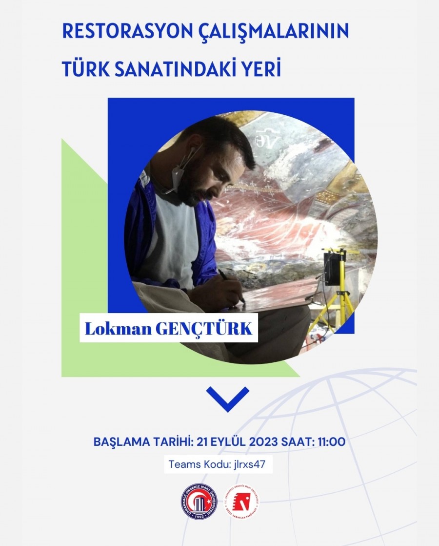Çanakkale Onsekiz Mart University, Faculty of Fine Arts, Department of Traditional Turkish Arts conducted an online discussion with Lokman GENÇTÜRK on September 21, 2023, at 11:00 AM via Zoom, with the title "The Role of Restoration Work in Turkish Art."