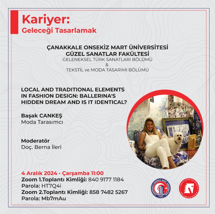 A presentation titled “Local and Traditional Elements in Fashion Design: Ballerina's Hidden Dream and Is It Identical?” was held for the students of the Traditional Turkish Arts Department and the Textile and Fashion Design Department. Delivered by fashion designer Başak Cankeş, the presentation explored the use of traditional and local elements in fashion design through two collections by the designer.