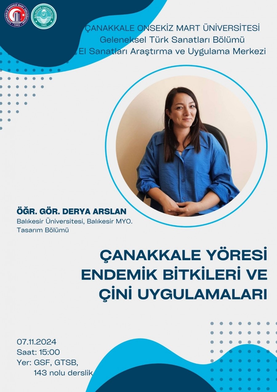 Lecturer Derya Arslan from the Design Department at Balıkesir University, Balıkesir Vocational School, held a talk titled "Endemic Plants of the Çanakkale Region and Their Applications in İznik Tiles" as part of the courses on Pattern Knowledge in Traditional Turkish Arts and Traditional Turkish Textile Arts in our department. During the session, she introduced endangered endemic plants and shared her own stylization works, as well as tile and ceramic applications, with our students. We would like to extend our sincere thanks to her.
