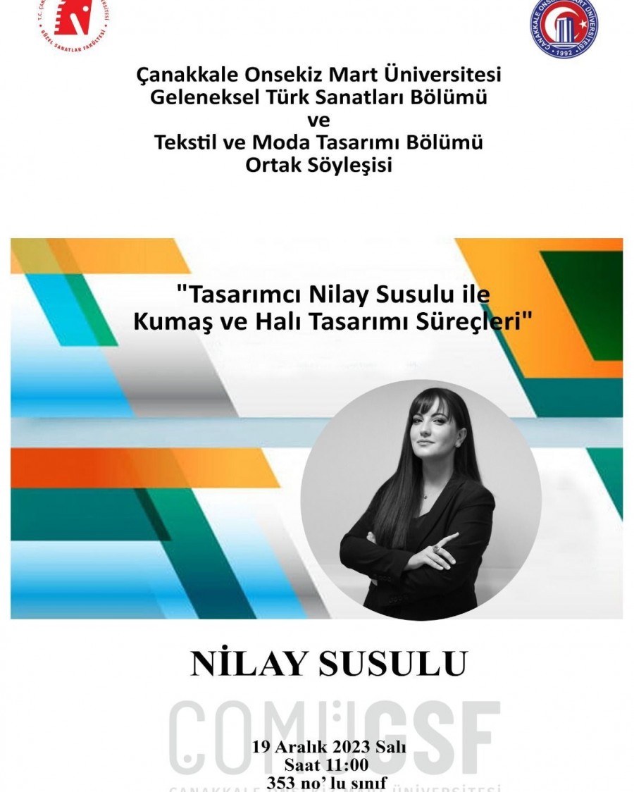 On December 19th, Tuesday, at 11:00, a discussion was held in collaboration between the Department of Traditional Turkish Arts and the Department of Textile and Fashion Design at Çanakkale Onsekiz Mart University Faculty of Fine Arts, featuring a conversation with Designer Nilay SUSULU.