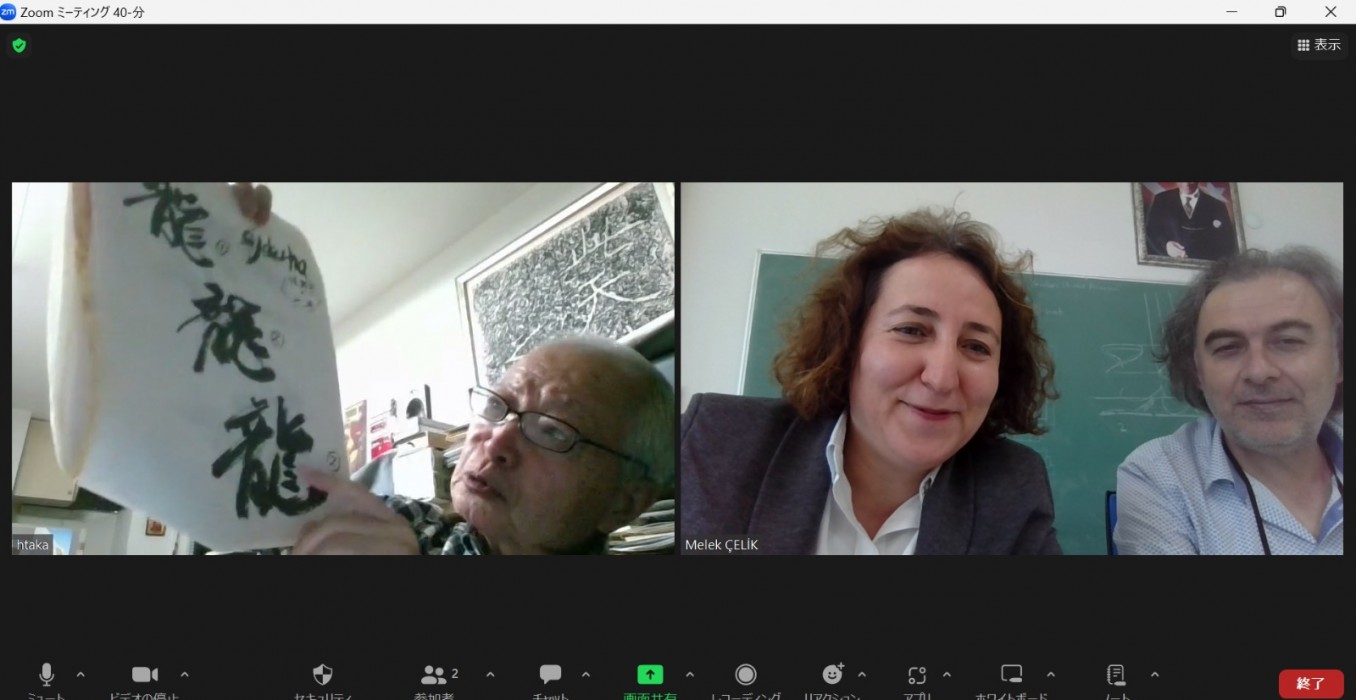 Zoom on the principles of calligraphy backup and reproduction made by combining the Faculty of Fine Arts and the Turkish-Japanese Friendship Club within the scope of the 27th Japan Days Festival, which will be held as a part of the 100th Anniversary Activities of ÇOMÜ Japanese Language Education Department with the 100th anniversary of the launch of the programs between Turkey and Japan. meeting meeting. Calligraphy program performers, Lecturer, attended the meeting. See. Dr. İsmail Öztürk and Japanese Calligrapher Hiroyuki Takakashi and Dr. Lecturer Melek Çelik Member attended.
